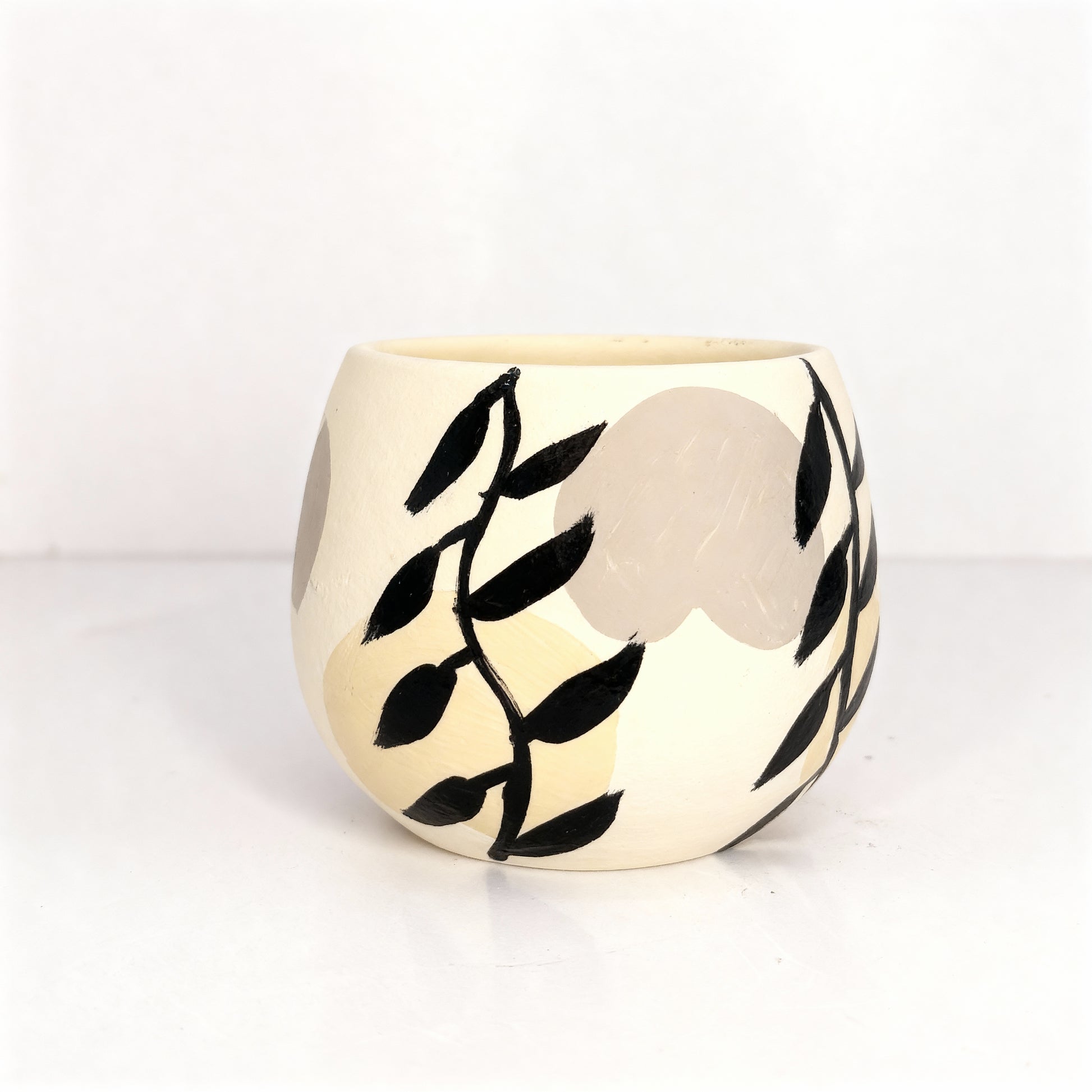 Botanical Hand-Painted Terracotta Pot – Cream (10 cm)